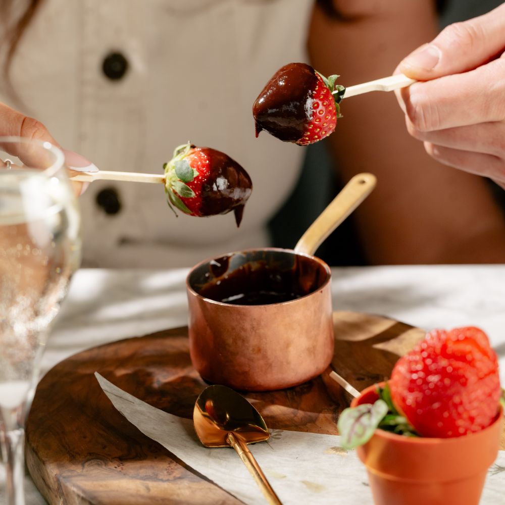 To finish, get tangled with our Plant One On Me sharing pudding –an edible chocolate plant pot filled with vanilla cheesecake and salted caramel, served with fresh strawberries, butterscotch chocolate sauce for dipping, prosecco** jelly shots… and two spoons!