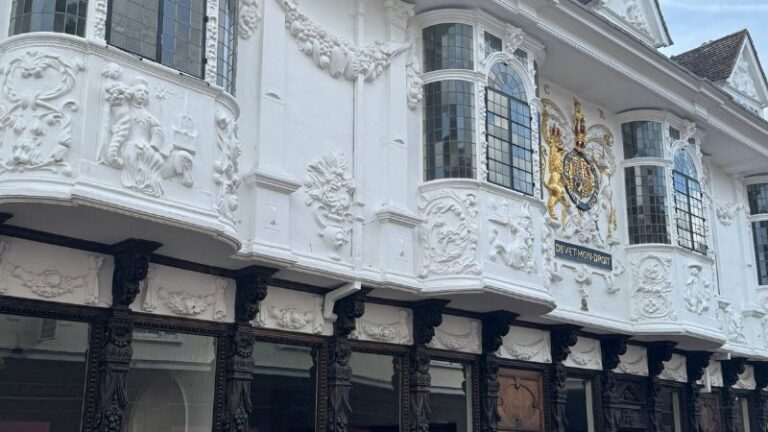 Arguably Ipswich’s most famous landmark, The Ancient House stands on the corner of Butter Market (the street, rather than the nearby shopping/leisure centre) and St Stephens Lane.